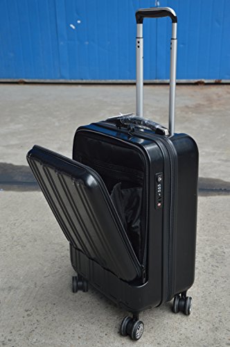 【機内持込みサイズなので出張などに大活躍】フロントオープンポケットスーツケース 【大容量 34L / TSAロック搭載 / 軽量設計 / 耐衝撃性 / 4輪スムーズ走行】 (ブラック)